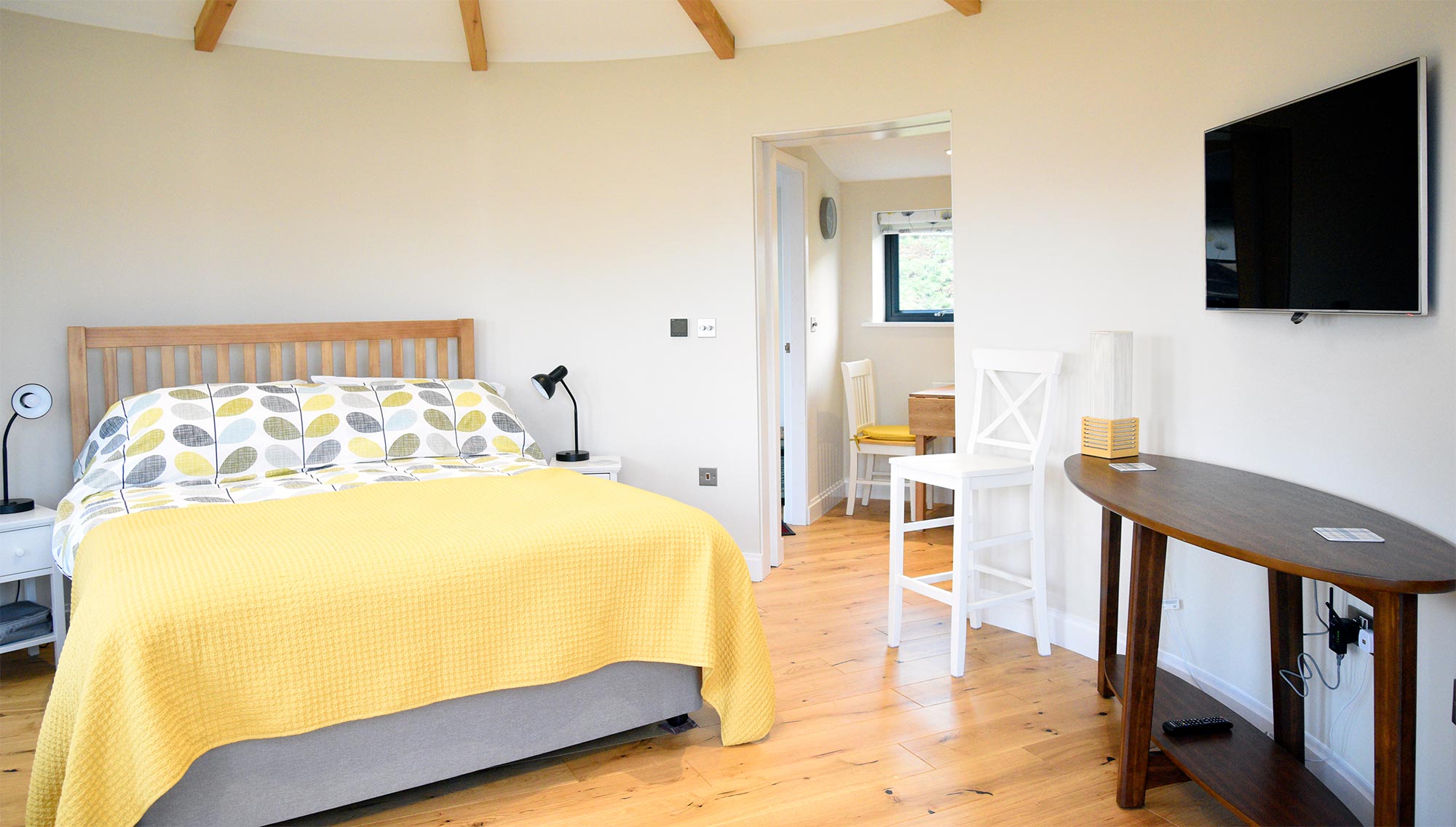 Our modern self catering apartment contains everything you would need for your visit to the Isle of Skye including king size double bed, en suite bathroom, kitchen, outside seating area, underfloor heating, widescreen TV and WIFI internet access.